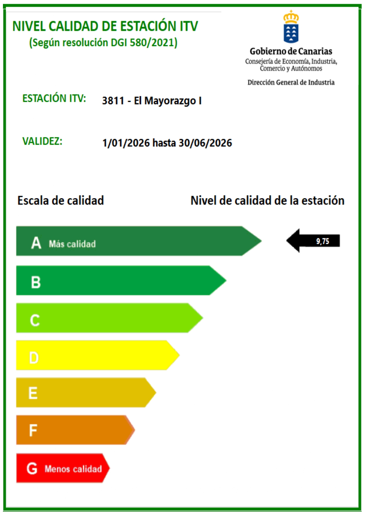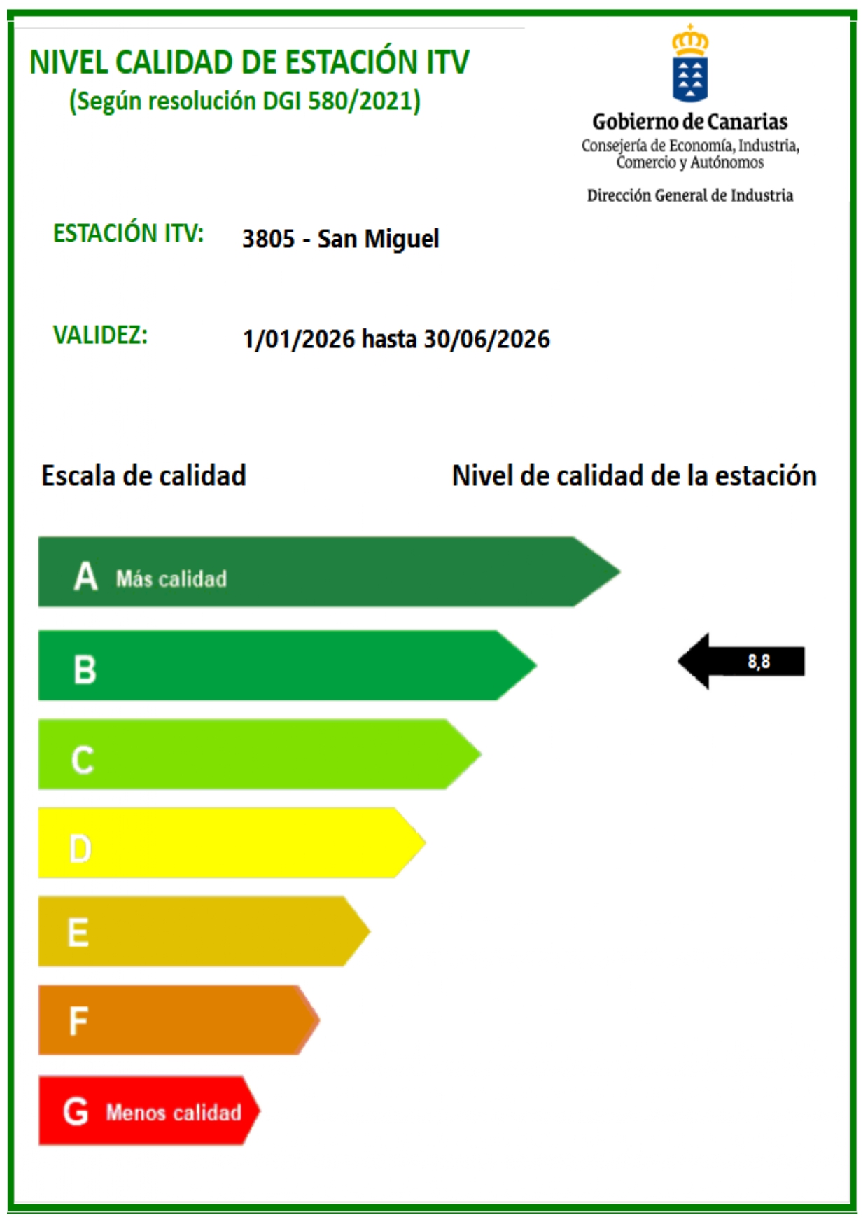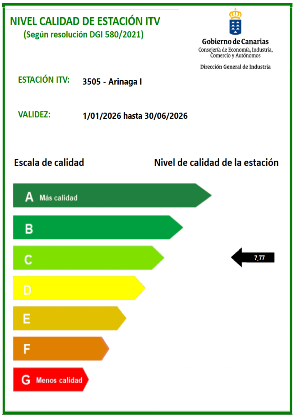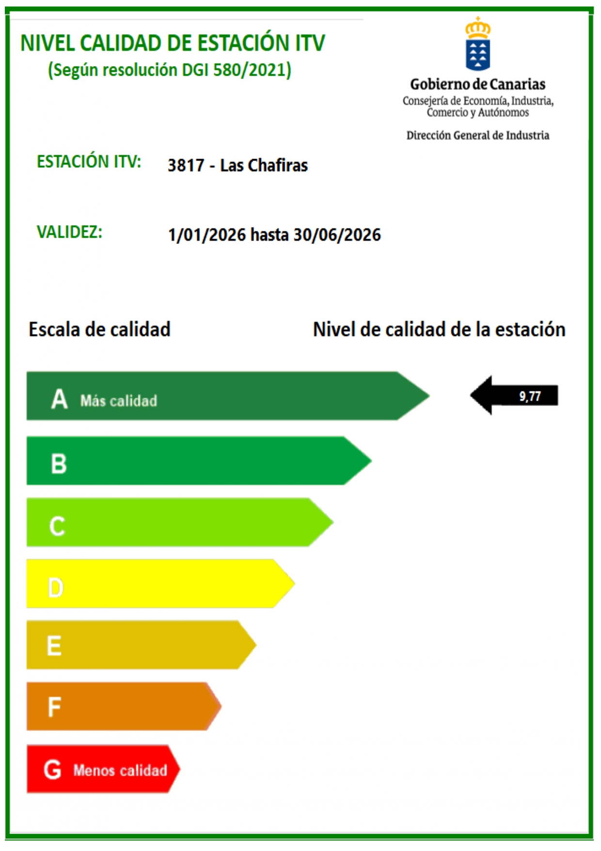 Certificados calidad estaciones de Canarias